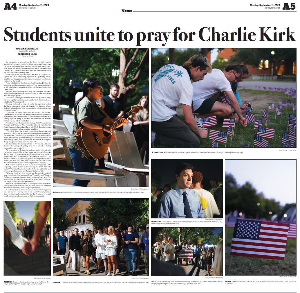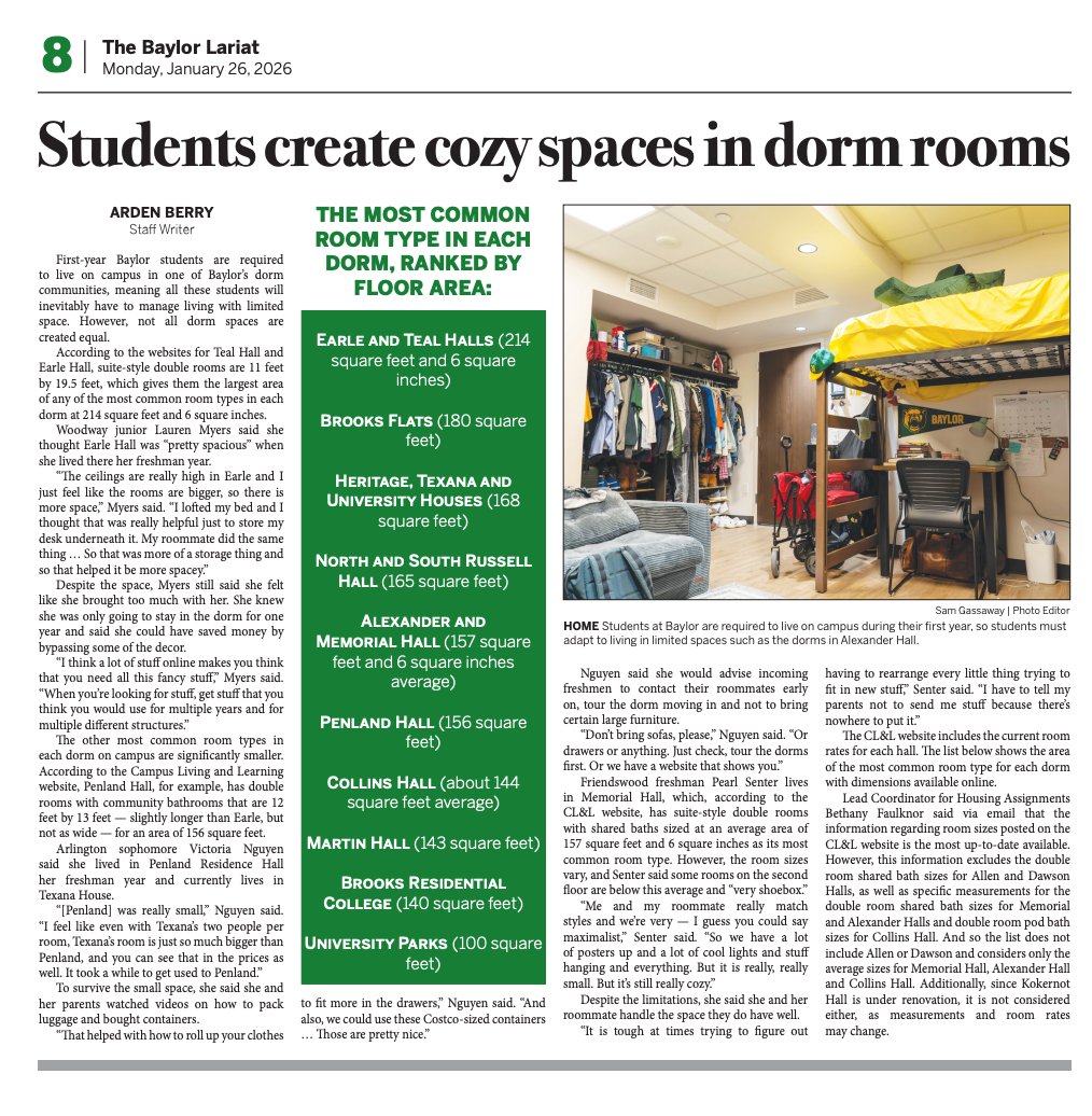 For the past two years, I've been responsible for designing engaging print layouts for the Baylor Lariat using Adobe InDesign. Here are a few examples of pages I've designed!
